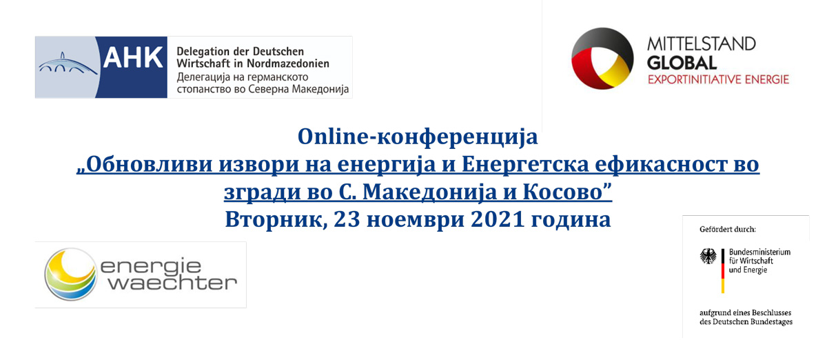 Македонско-Германското стопанско здружение организира онлајн-конференција на тема „Обновливи извори на енергија и Енергетска ефикасност во згради во С. Македонија и Косово” која ќе се одржи на 23 ноември 2021 година со почеток во 10:00 часот.