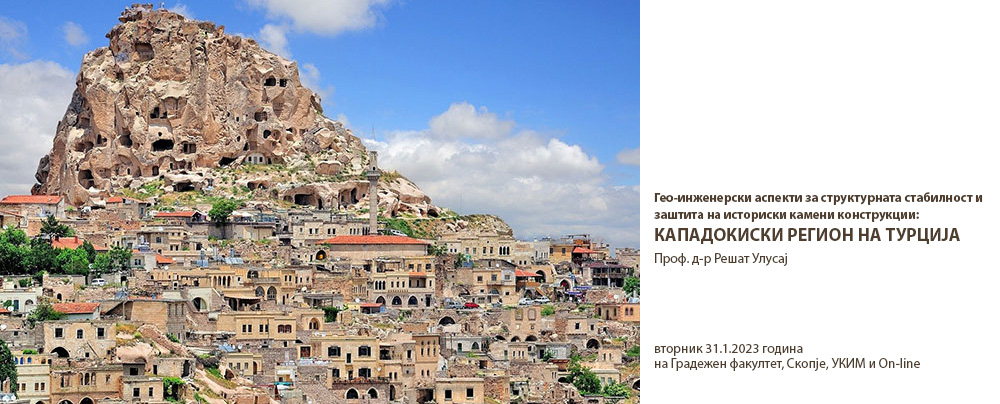 Предавањето што ќе го одржи Проф. д-р Решат Улусај е со наслов „Гео-инженерски аспекти за структурната стабилност и заштита на историски камени конструкции: Кападокиски регион на Турција“